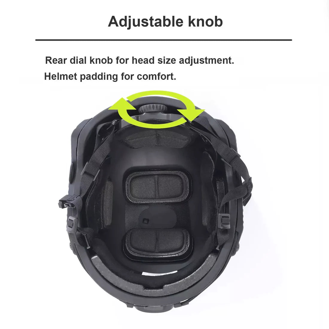 The Level IIIA FAST Helmet is designed to offer high-throughput, reliable protection against fragments and ballistic threats. It is durable, water-resistant, and UV-resistant, ensuring longevity and performance in various conditions. The helmet features a polymer shell that provides flexibility for additional equipment and maintains a VISO-based design. It includes an internal padding system made of memory foam that creates an impact buffer, enhancing comfort and safety.